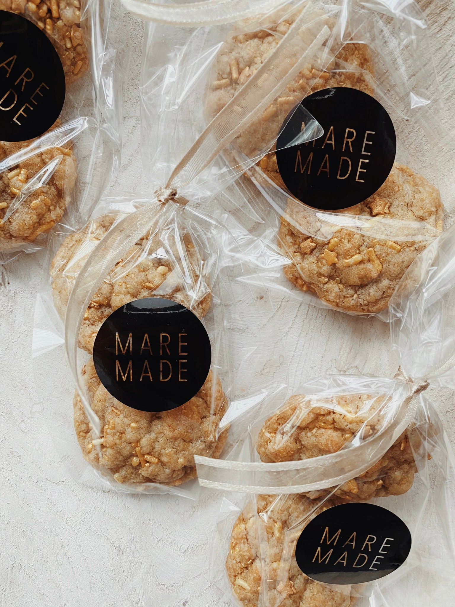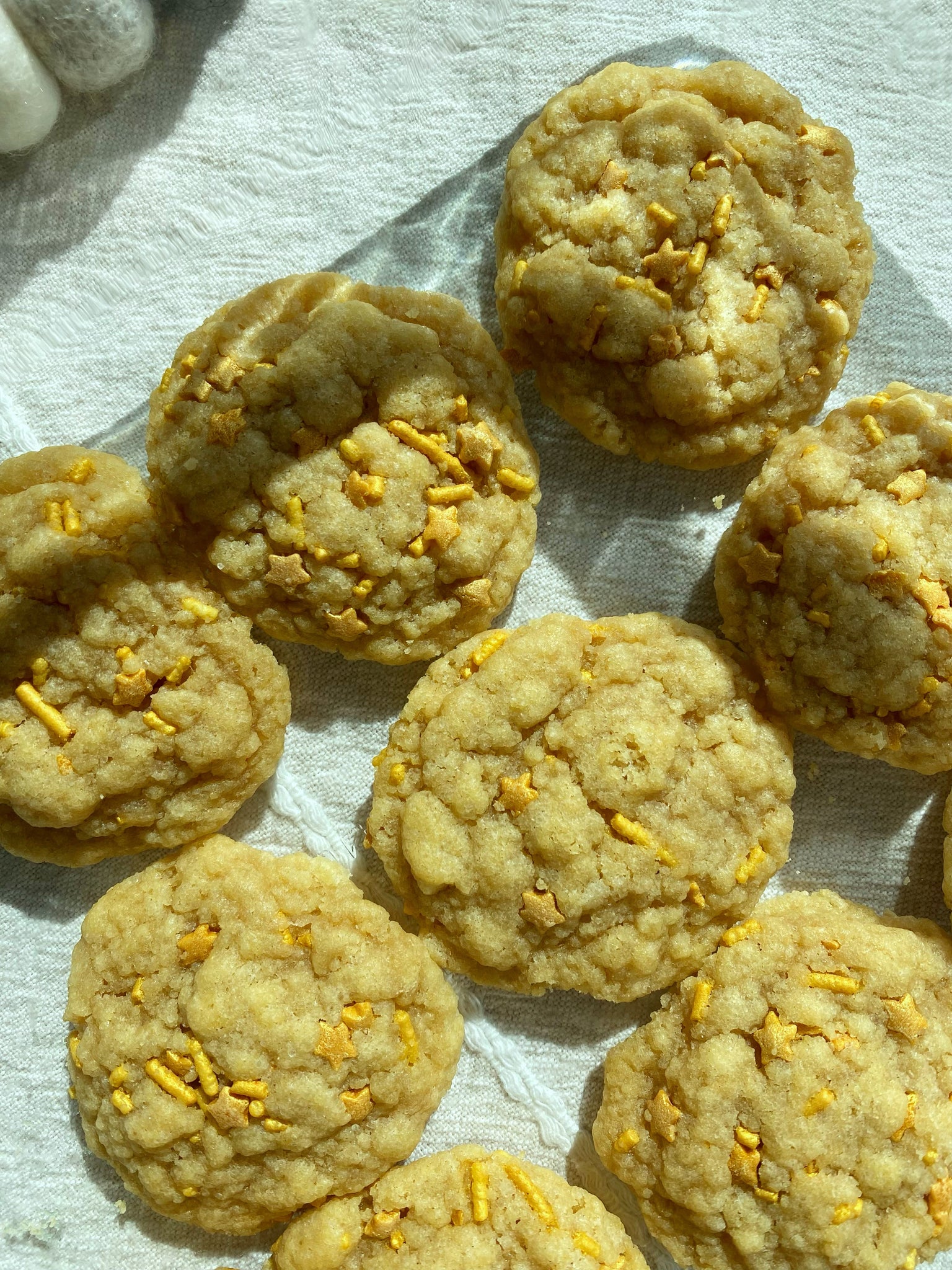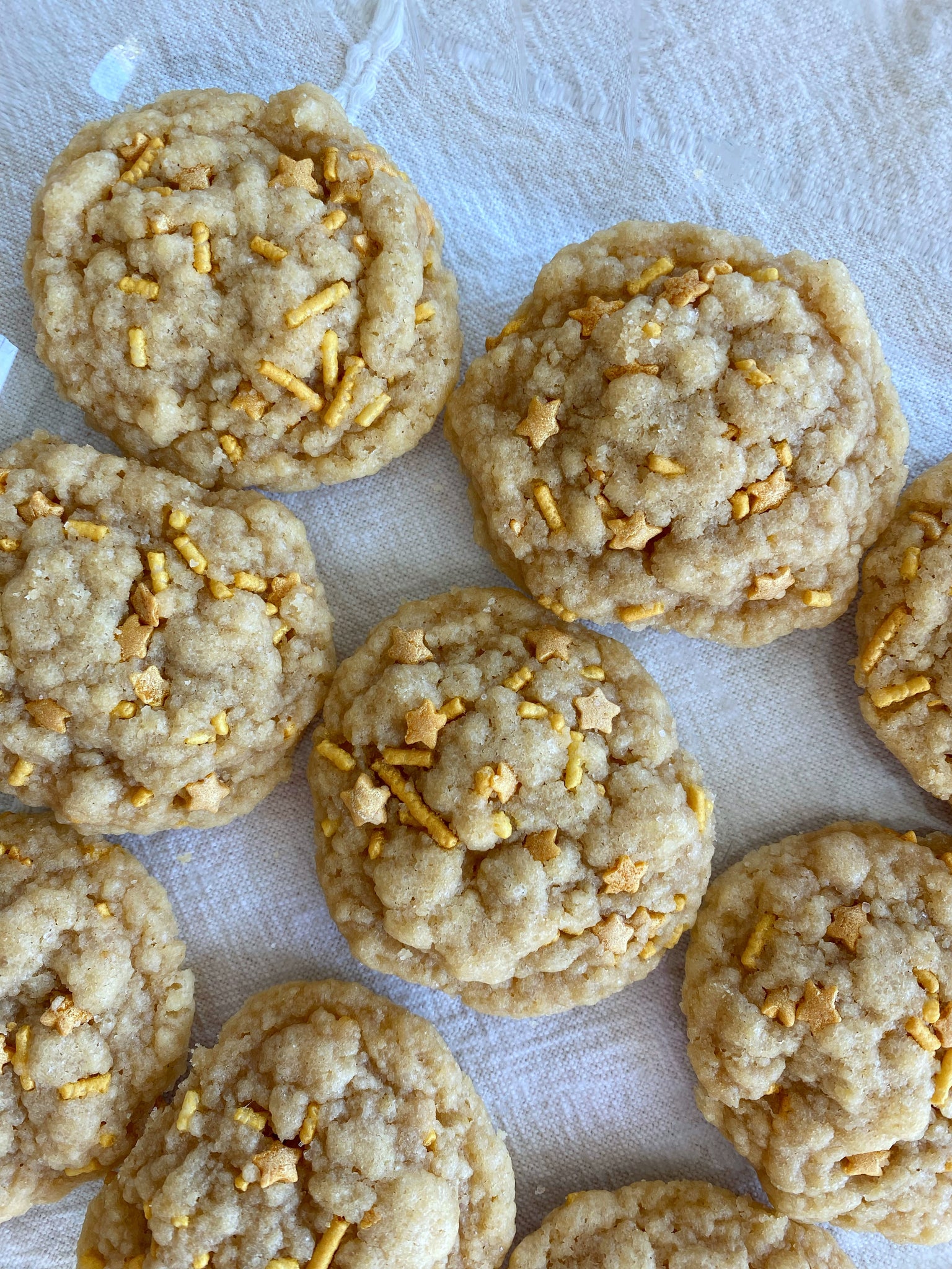 Unbleached all-purpose flour, organic cane sugar, gold sprinkles, organic butter, organic brown sugar, organic eggs, organic vanilla extract, baking soda, salt.